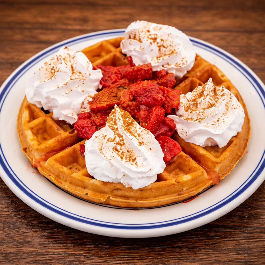 Food is always good, fresh and hot. We love the fries. Chicken Caesar wrap tastes great. Portions are big too. Pancakes are bigger than your face!